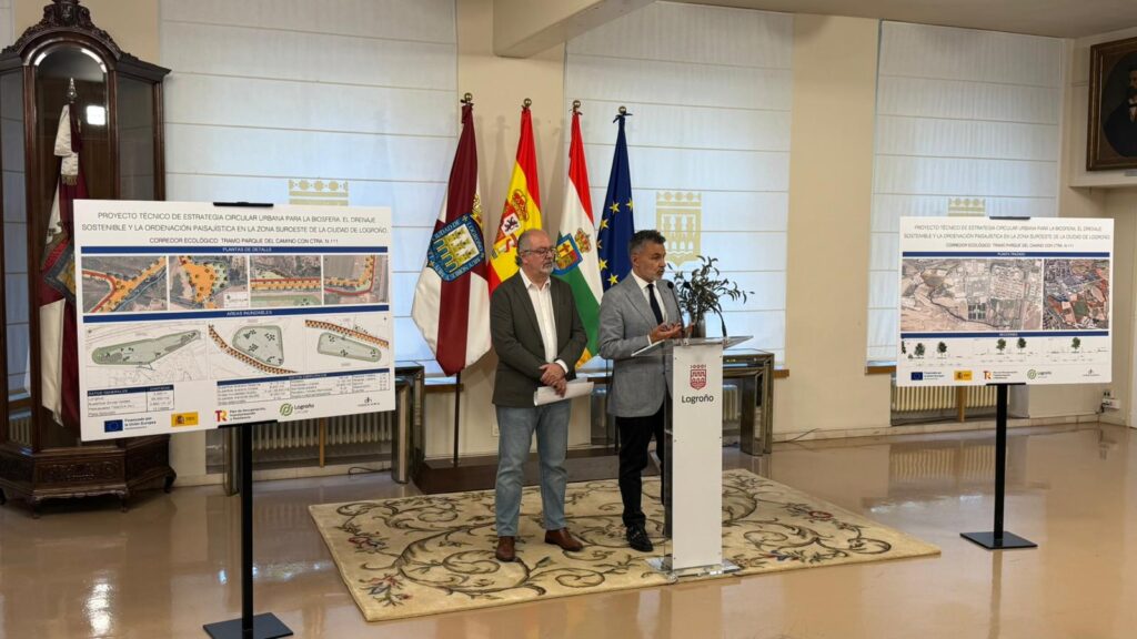 El alcalde de Logroño, Conrado Escobar, junto con el concejal de Medio Ambiente, Jesús López, ha presentado la primera fase del Corredor Ecológico Sur, un ambicioso proyecto que transformará la zona suroeste de la ciudad en un gran espacio verde de conexión, convivencia y sostenibilidad. Esta primera fase, con una inversión cercana a los 3,9 millones de euros, comprende un tramo de 3,5 kilómetros entre el Parque del Camino y la carretera N-111, que integrará movilidad sostenible, drenaje natural y restauración paisajística.